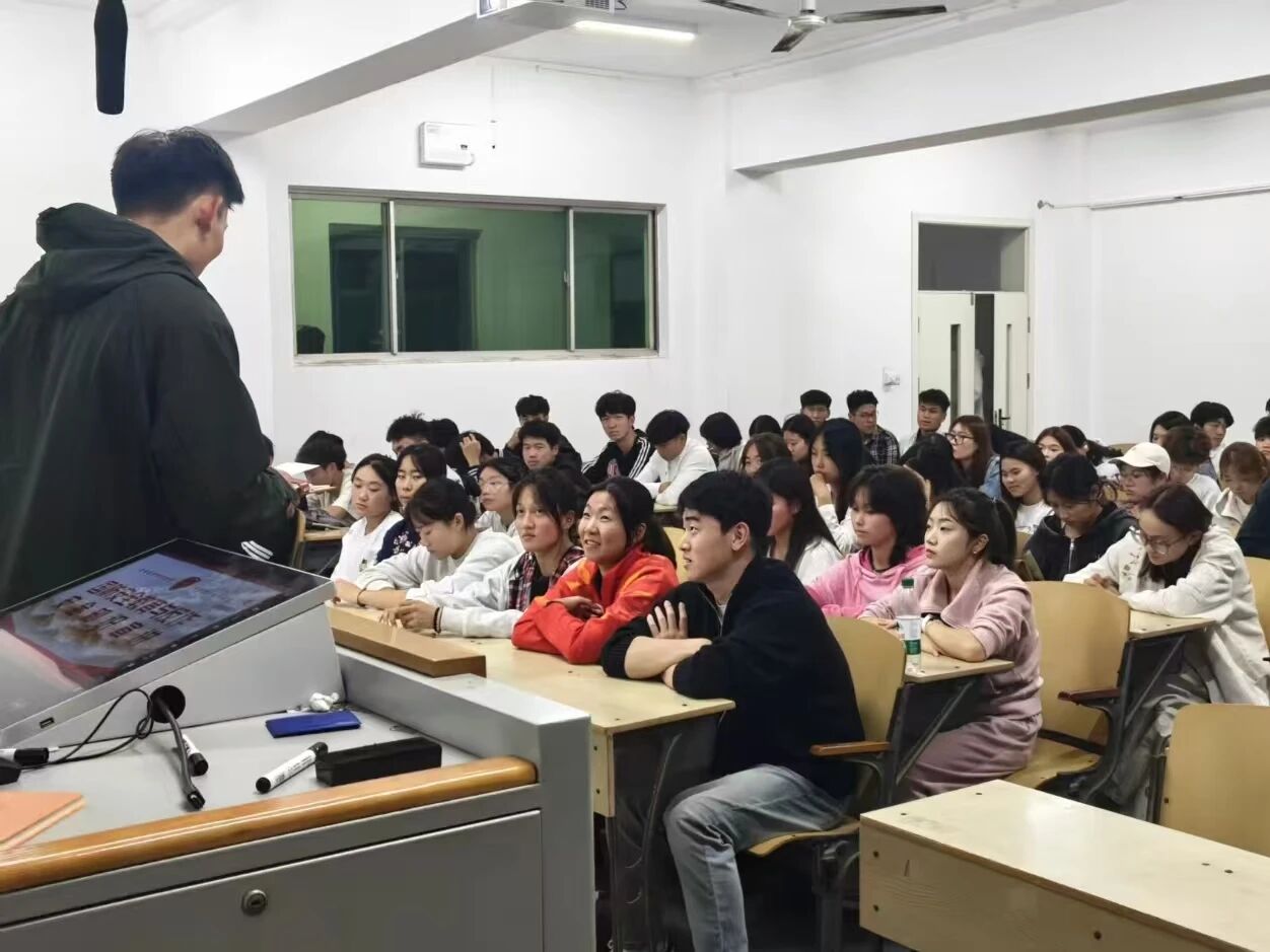 活动伊始,王鑫老师以国家安全为核心切入点,结合国际形势与历史案例,系统阐释国防安全的深层内涵,从国防法规细则到个人应尽国防责任,引导同学们建立“国防无小事,人人尽义务”的认知。紧接着,王鑫聚焦电信诈骗、网络诈骗等安全风险,结合真实案例拆解“杀猪盘”“虚假购物”等骗局的操作逻辑。然后又针对宿舍安全管理进行了强调,如用电规范、作息纪律、早操出勤与夜不归宿等校园安全要点展开讲解,现场通过互动问答强化知识吸收,同学们积极参与、氛围热烈。活动尾声,王鑫再次强调安全意识的日常化实践,呼吁大家将所学转化为行动自觉。