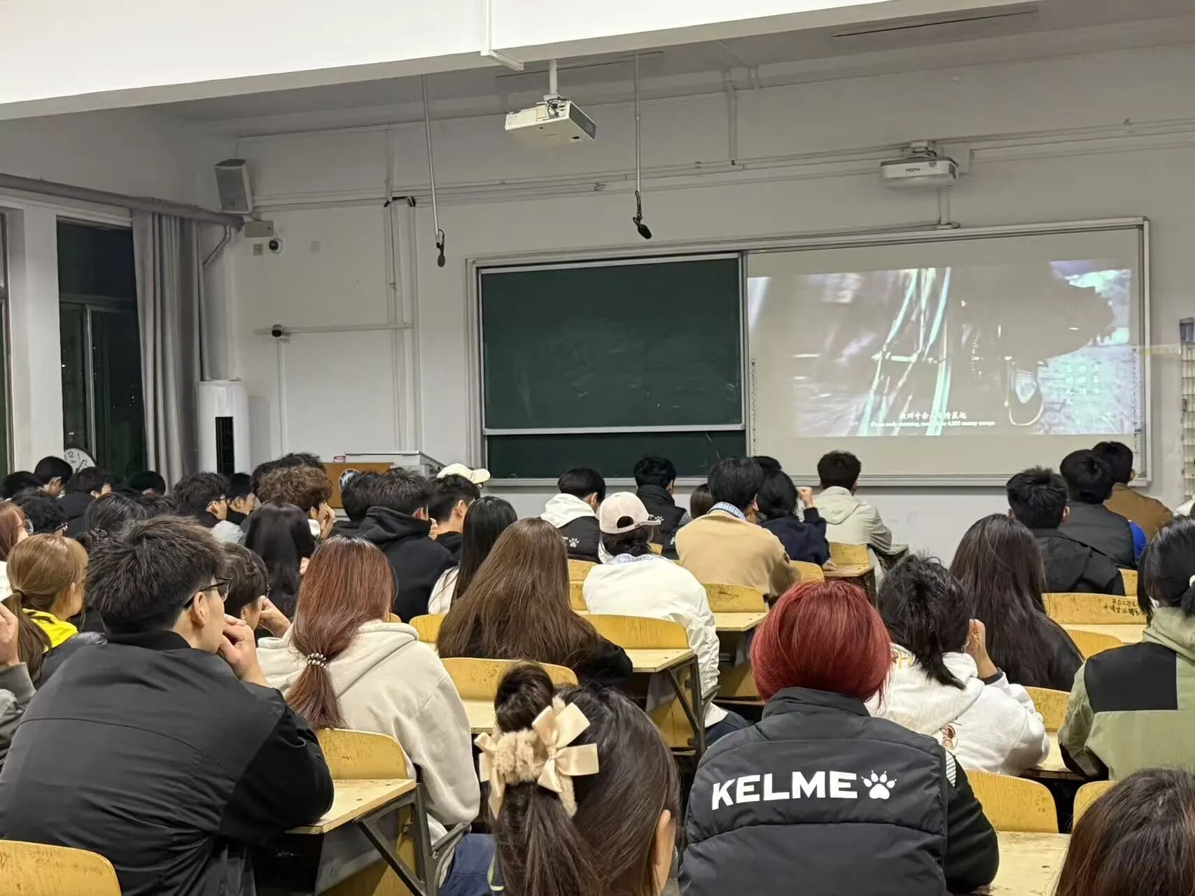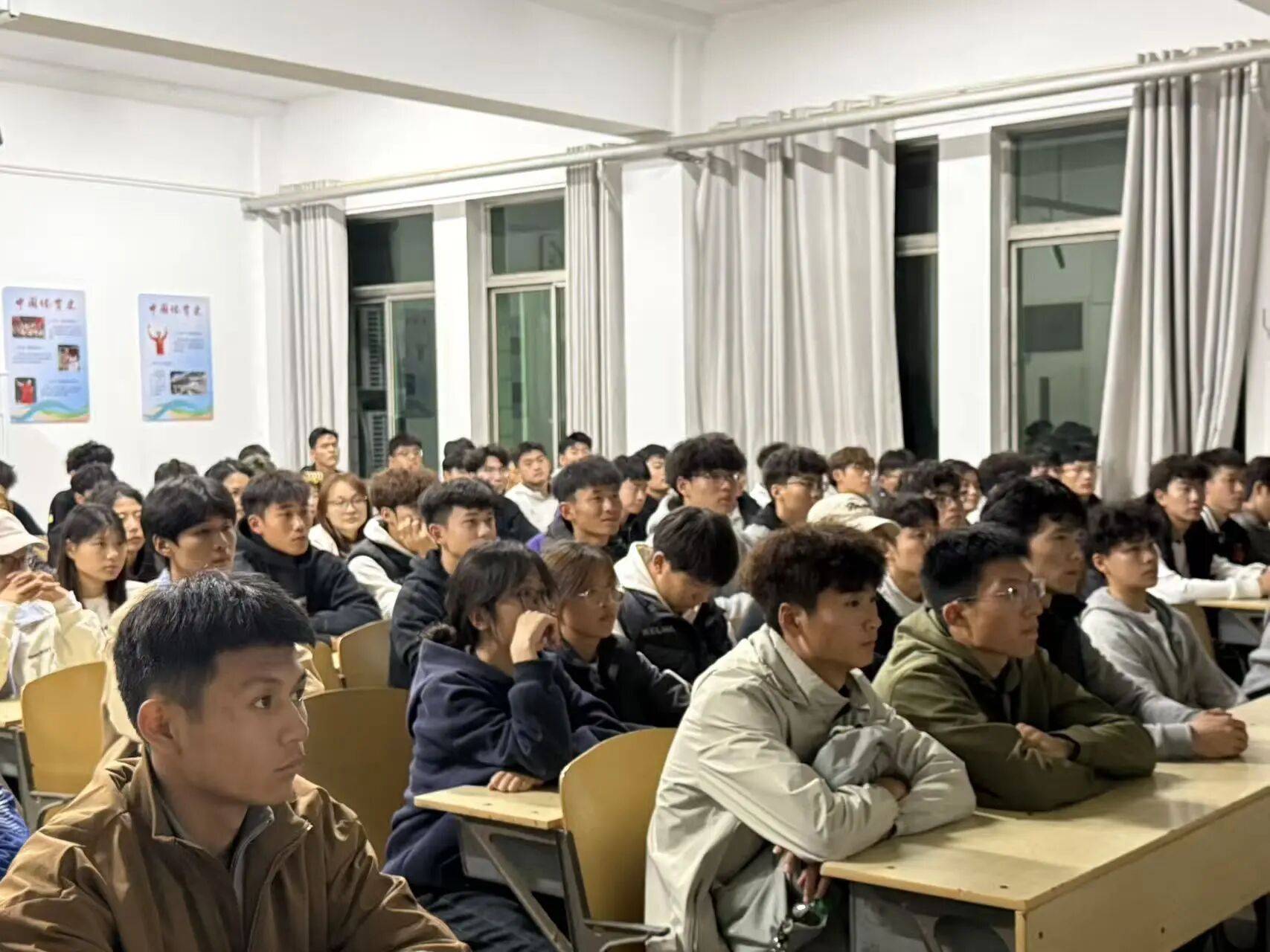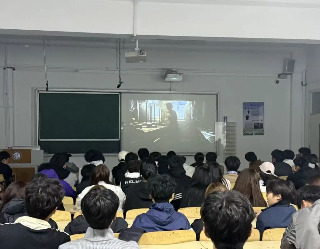 活动伊始,团委书记陈明作为主讲人详细阐述了本次活动的初衷,他指出《南京照相馆》,不只是普通的影像展现,更是一堂深刻的爱国教育课。影片以一家照相馆的兴衰为线索,带我们重回那个风雨如磐的年代,让我们透过镜头真切见证民族曾历经的苦难,以及在苦难中彰显的坚韧品格;他号召同学们在观影时用心感受历史的厚重温度,从先辈的抗争与坚守中汲取砥砺前行的精神力量。随后,灯光熄灭,电影正式放映。