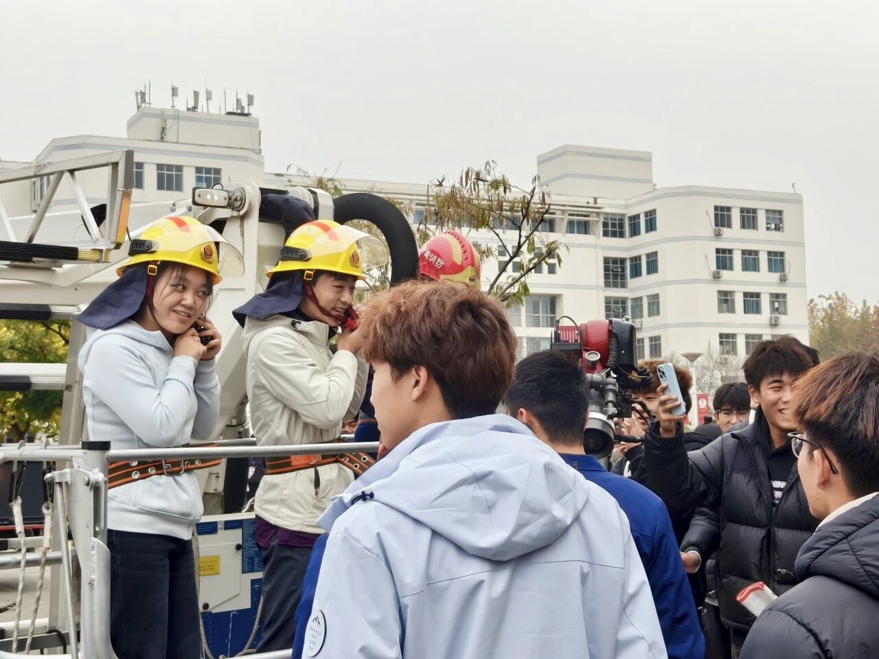 室外体验环节中,消防人员带领学生近距离接触消防车及各类专业装备,大家亲身穿戴消防头盔、操作消防水带、学习登高平台使用方法。通过亲手触摸与模拟操作,学生深刻体会到专业消防救援的严谨与高效,进一步深化了“安全无小事,防患于未然”的责任意识。BBIN娱乐集团学生更结合专业特色,将消防“四个能力”(检查火灾隐患、扑救初起火灾、组织疏散逃生、开展宣传培训)与日常训练中的协作精神、体能素质相融合,切实筑牢个人与集体的双重安全防线。