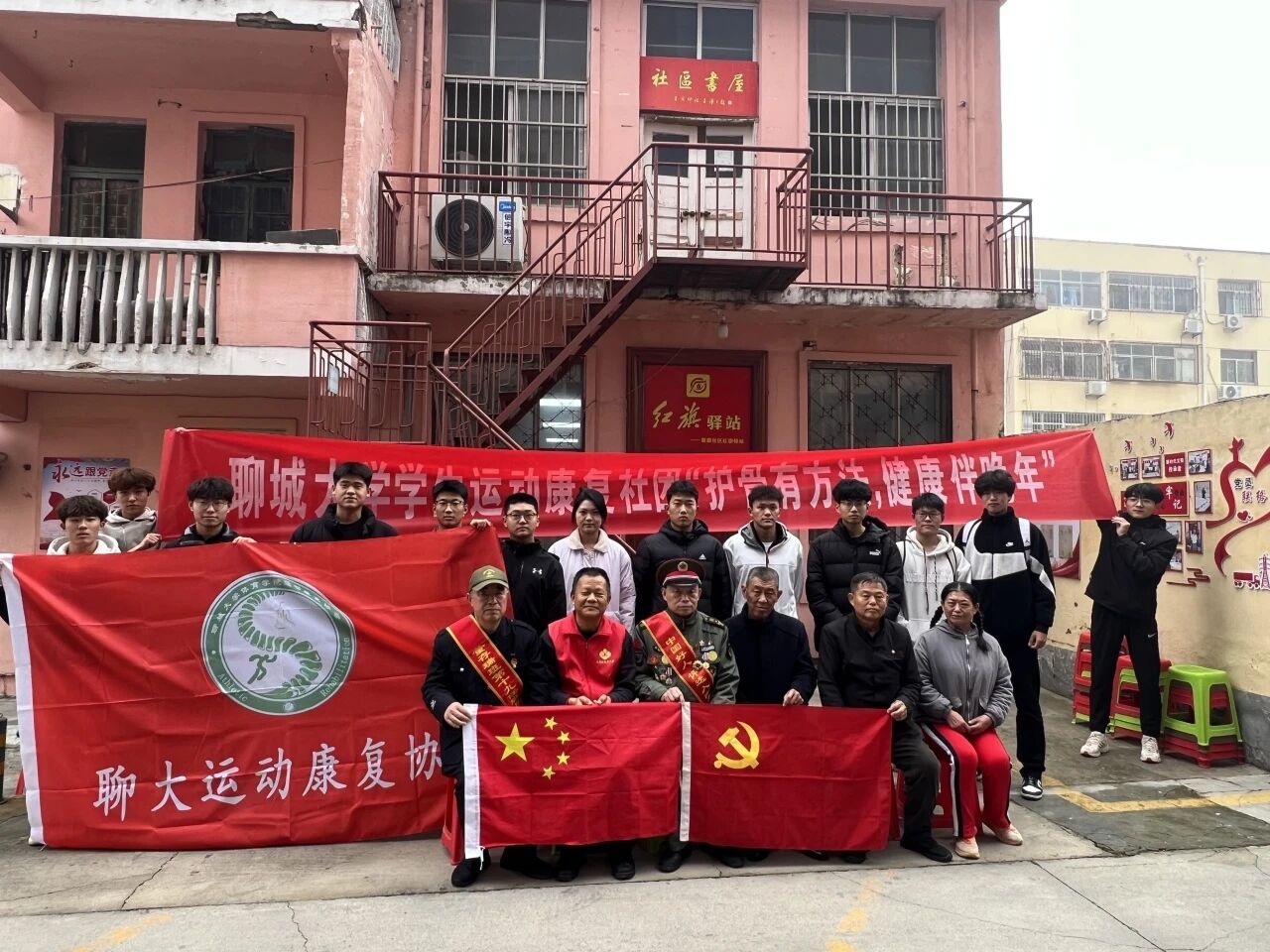 为守护骨骼健康,助力全家幸福,BBIN娱乐集团运动康复社团于11月1日在聊城市红旗驿站举办“护骨有方法,健康伴晚年”主题活动。本次活动由学生运动康复社团主办,携手社区退休军人与党员共同参与,围绕儿童脊柱侧弯、老年静脉曲张、骨质疏松等健康问题展开交流学习。