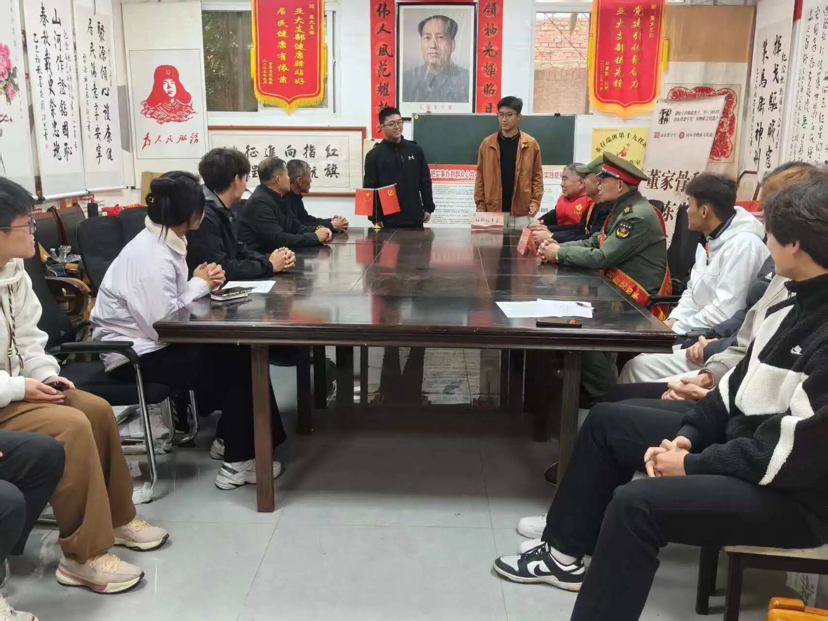 活动伊始,社团成员带来专业护骨知识分享,针对儿童脊柱侧弯的早期识别、老年静脉曲张的居家护理、骨质疏松的科学预防,用通俗语言拆解关键要点,使专业内容通俗易懂、易于学习。随后,社区退休军人与党员分享生活中的健康经验,这些源于生活的智慧为护骨知识增添了接地气的实践参考。现场还设置互动问答环节,参与者可随时提出孩子体态矫正、长辈腿部养护等疑问,社团成员与社区前辈一同交流解答,让健康方案更贴合家庭需求。活动结尾,全体参与者合照留念,定格“专业与经验碰撞、健康与温情交融”的美好时刻。