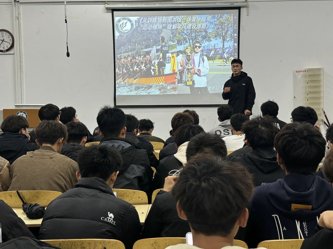 谈及成长感悟,他表示, 运用训练场上“坚韧不拔、精益求精、团队协作”的品质,是攻克学术难关的重要法宝——正如日复一日的体能训练锤炼体魄,持之以恒的知识积累方能筑牢学术根基;如同赛场上的战术配合讲究默契协同,科研探索中的交流协作同样不可或缺。他从时间管理、目标设定、高效学习等多个维度,分享了如何平衡训练与学业的实用技巧,细致拆解了从课程学习到科研实践、从竞赛备赛到保研冲刺的全流程规划,用自己亲身经历为典范向我们展现了体育学子“文武双全”的青春风采。