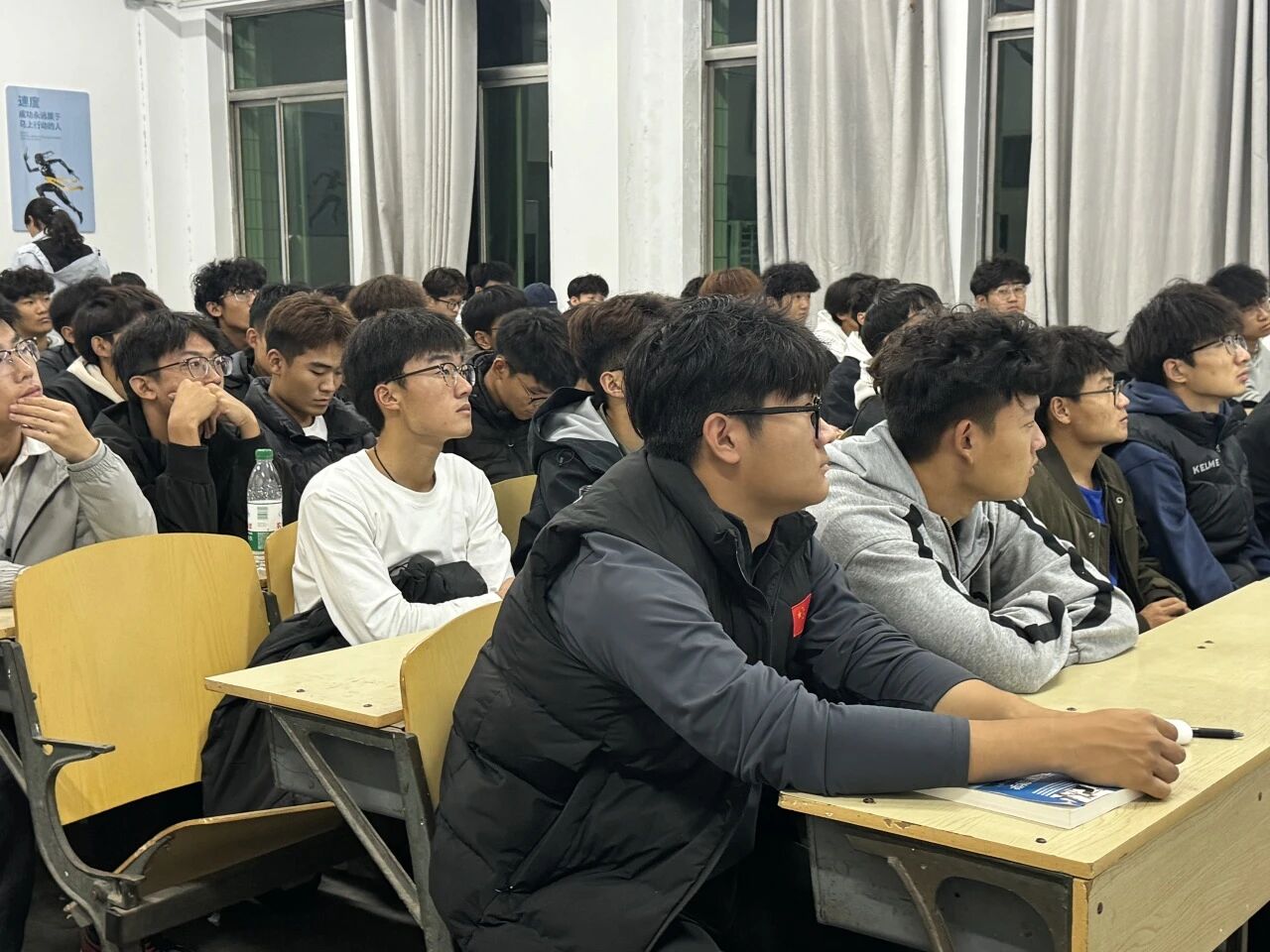 现场同学认真聆听、积极互动,提问环节气氛热烈。同学们围绕“如何克服学业倦怠”“科研入门技巧”等问题踊跃提问,唐明旺逐一耐心解答,其真诚的分享和务实的建议赢得了同学们的阵阵掌声。参会学生纷纷表示,此次分享打破了世人对体育生的刻板印象,更是回应了那些来自外界质疑的声音,让更多人深刻认识到运动精神蕴含的强大育人力量,许多同学表示听完了这场座谈会受益匪浅,同时也给对现阶段有一些迷茫的同学们提供了宝贵的经验和建议,未来将以优秀学长为榜样,把训练中的拼搏劲头转化为学习的内生动力。