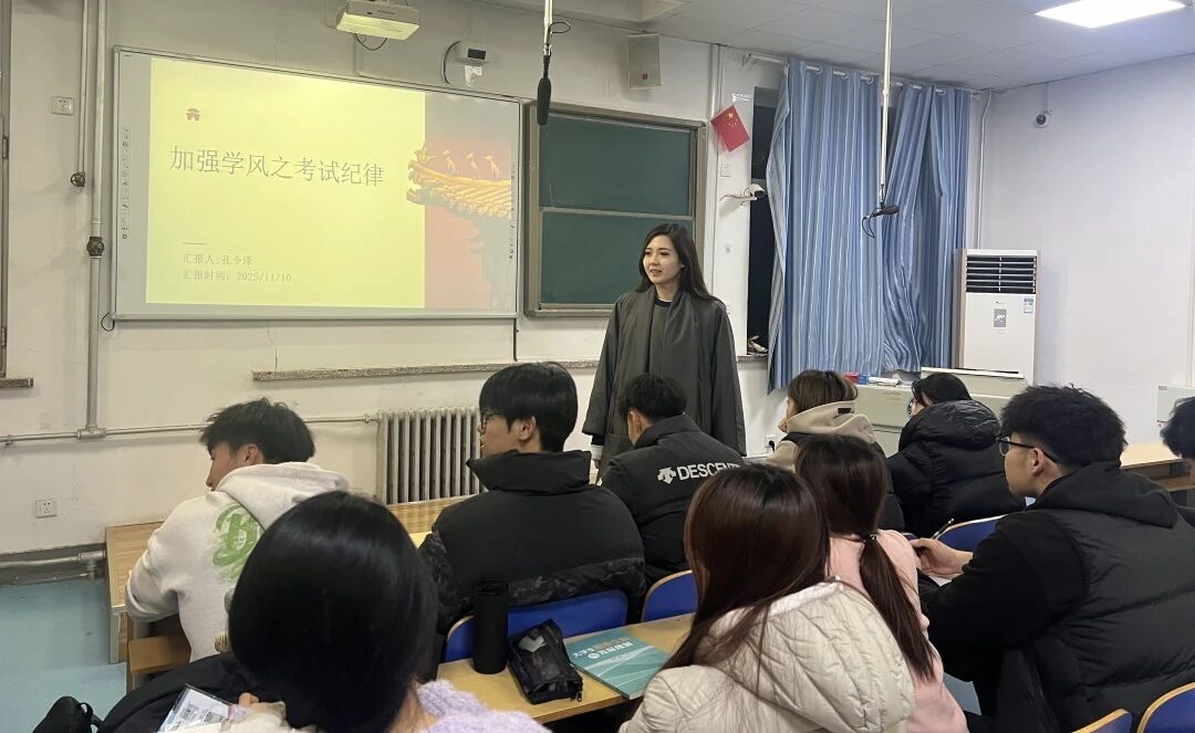 为加强学风建设,严肃考试纪律,营造公平、公正的考试环境,BBIN娱乐集团于2025年11月10日在西校区5#406教室举行“加强学风之考试纪律”为主题的宣讲讲座。本次讲座主讲人孔令泽面向全体大一新生,为即将到来的期中考试进行考前动员与纪律教育。