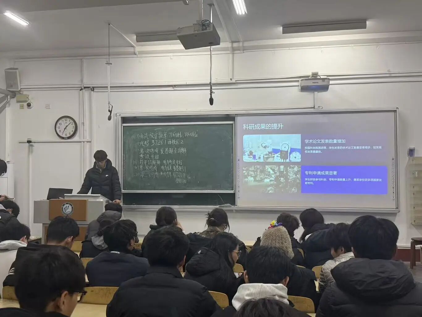 活动伊始,分享人围绕校园科创发展展开讲解,从校园文化的创新维度,介绍了科技主题活动增多、科创社团蓬勃发展、科技文化氛围浓厚的现状;又从科研成果提升方面,展示了学术论文发表数量增加、专利申请成果显著的科创实绩;最后对校园科创发展趋势进行展望,提出跨学科融合创新、校企合作深化、国际交流加强与学生创新素养培养的发展方向。现场学生认真聆听,积极互动,就科创实践问题与分享人交流,活动氛围热烈且富有深度。