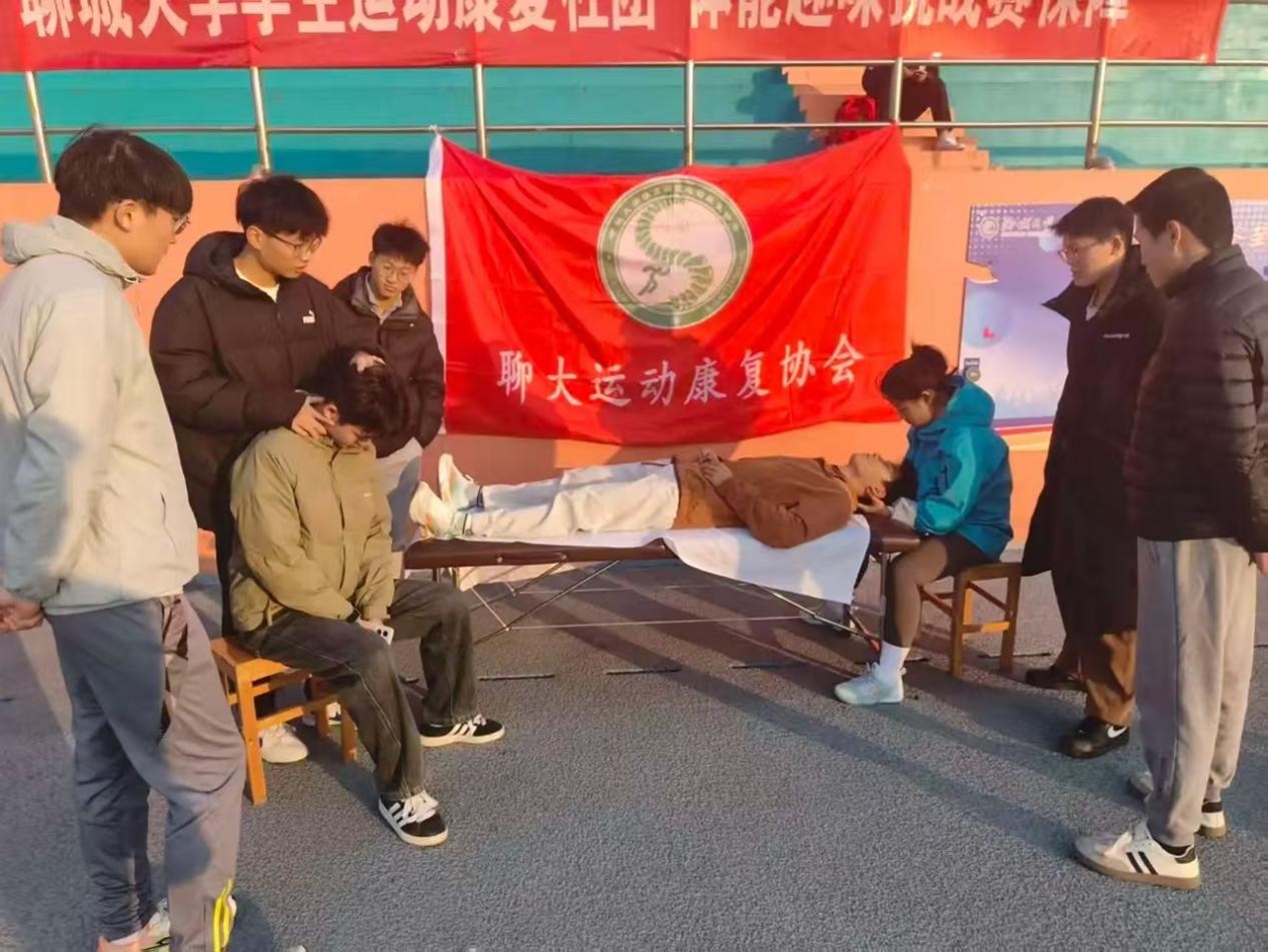 聊大运动康复协会为校园赛事提供康复保障服务,勤工助学学生参与一线服务