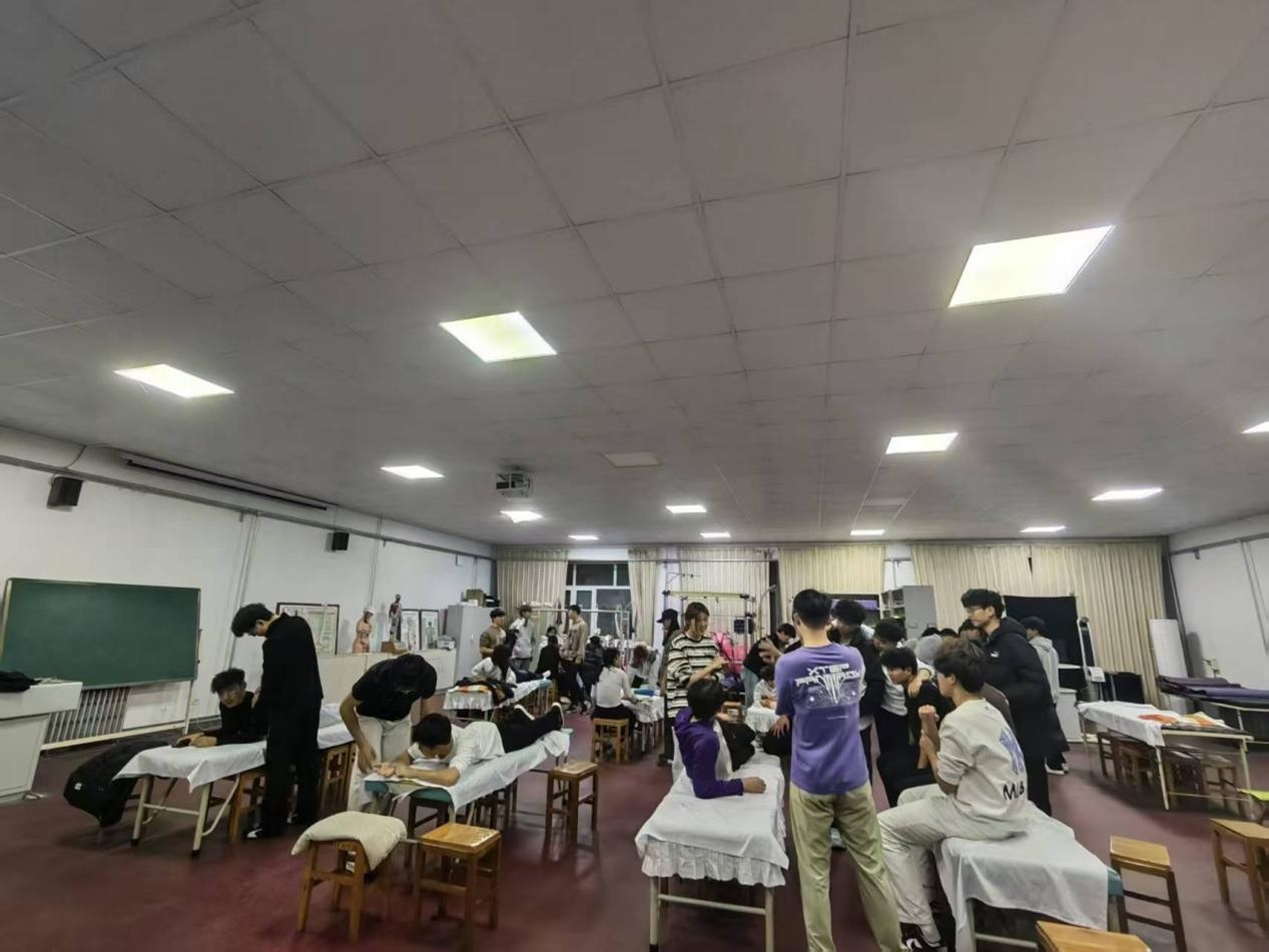 运动康复实操教学环节,勤工助学学生协助老师开展技能教学