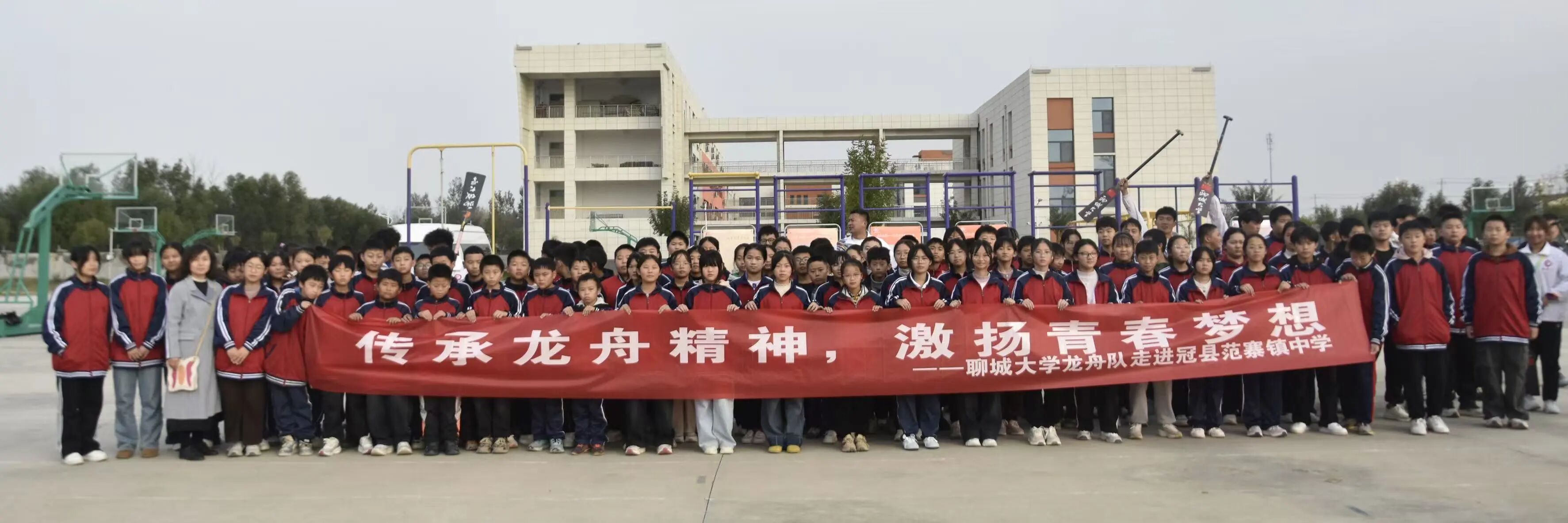 为传承中华优秀传统体育文化,弘扬团结拼搏的龙舟精神,BBIN娱乐集团于2025年10月23日走进冠县范寨镇中学,开展“龙舟精神进校园”主题宣讲活动。活动由学院党委副书记、副院长李晓鹏带队,BBIN娱乐集团团委书记陈明、龙舟队教练王坤明及多位龙舟队队员共同参与。